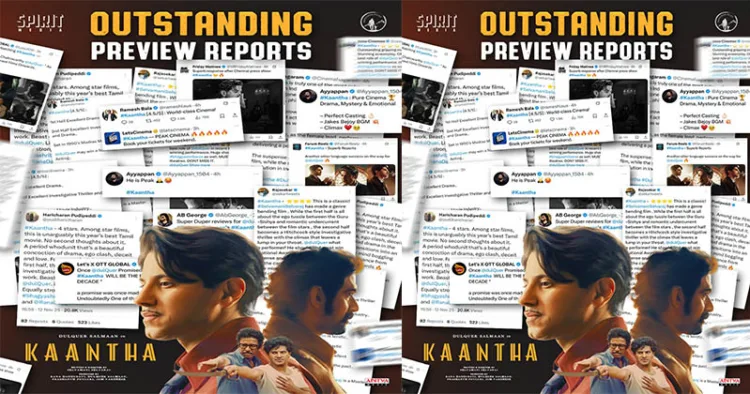 ദുൽഖർ സൽമാൻ നായകനായെത്തുന്ന ‘കാന്ത’ യുടെ പ്രിവ്യു ഷോക്ക് ഗംഭീര പ്രതികരണം. കഴിഞ്ഞ ദിവസം ചെന്നൈയിൽ ആണ് പ്രസ്, മൂവി മീഡിയ എന്നിവർക്കായി ചിത്രത്തിന്റെ പ്രത്യേക ഷോ സംഘടിപ്പിച്ചത്. അഭൂതപൂർവമായ പ്രതികരണമാണ് ചിത്രത്തിന് ഈ ഷോ കണ്ട പ്രേക്ഷകരിൽ നിന്നും ലഭിച്ചത്. ചിത്രം നവംബർ 14 ന് ആഗോള റിലീസായി എത്തും. സെൽവമണി സെൽവരാജ് രചിച്ചു സംവിധാനം ചെയ്ത ചിത്രം നിർമ്മിച്ചിരിക്കുന്നത് ദുൽഖർ സൽമാന്റെ ഉടമസ്ഥതയിലുള്ള വേഫേറർ ഫിലിംസ്, റാണ ദഗ്ഗുബതിയുടെ ഉടമസ്ഥതയിലുള്ള സ്പിരിറ്റ് മീഡിയ എന്നിവർ ചേർന്നാണ്. ദുൽഖർ സൽമാൻ, ജോം വർഗീസ്, റാണ ദഗ്ഗുബതി, പ്രശാന്ത് പോട്ട്ലൂരി എന്നിവരാണ് ചിത്രത്തിന്റെ നിർമ്മാതാക്കൾ. ചിത്രം കേരളത്തിൽ എത്തിക്കുന്നത് വേഫറെർ ഫിലിംസ് തന്നെയാണ്.