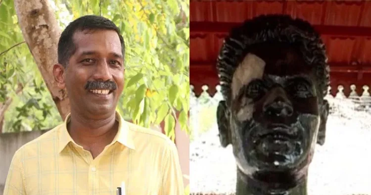 സിപിഎമ്മില് പിണറായി- വിഎസ് പക്ഷങ്ങള് പരസ്പരം പോരടിച്ചിരുന്ന കാലത്താണ് പി. കൃഷ്ണപിള്ള സ്മാരകം തകര്ത്തത്. 2013 ഒക്ടോ. 31 ന് പുലര്ച്ചയാണ് കൃഷ്ണപിള്ള മരിച്ച മുഹമ്മ കണ്ണര്കാട്ടെ വീടിനു മുന്നിലെ സ്മാരകസ്തൂപം തകര്ത്തത്. ലതീഷ് ബി. ചന്ദ്രന്, അന്നത്തെ കണ്ണര്കാട് ലോക്കല് സെക്രട്ടറി സാബു എന്നിവരടക്കം അഞ്ച് സിപിഎം പ്രവര്ത്തകരായിരുന്നു പ്രതികള്. ഇവരെ പാര്ട്ടിയില് നിന്ന് പുറത്താക്കി. വിഎസ് മുഖ്യമന്ത്രിയായിരുന്നപ്പോള് പേഴ്സണല് സ്റ്റാഫ് അംഗവും കേരള സര്വകലാശാല യൂണിയന് മുന് ജന. സെക്രട്ടറിയും എസ്എഫ്ഐ സംസ്ഥാന ജോ. സെക്രട്ടറിയുമായിരുന്നു ലതീഷ് ചന്ദ്രന്.