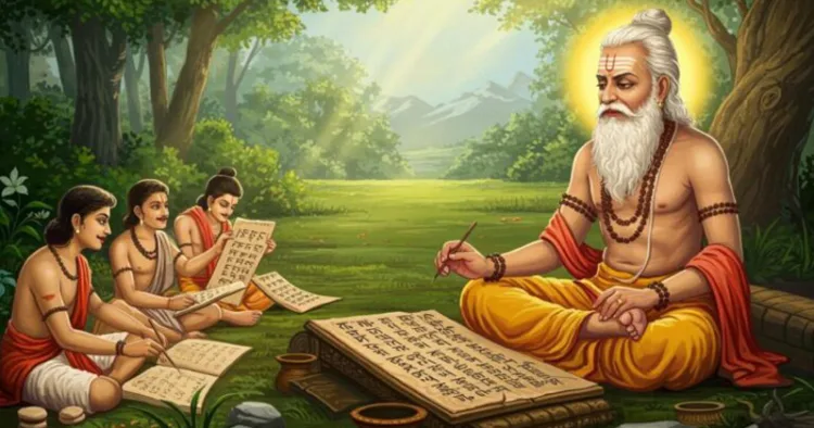 ഭാരതത്തിന്റെ യഥാതഥമായ സാമ്പത്തിക വീക്ഷണം വേദങ്ങളിലാണ് പ്രകടമാകുന്നത്. ഇതേപോലെ വിഭിന്നങ്ങളായ, ജീവിതഗന്ധിയായ വിഷയങ്ങളെ പരിഗണിക്കുകയും ഉത്തമമായ മാര്‍ഗനിര്‍ദ്ദേശങ്ങള്‍ തരുകയും ചെയ്യുന്നതുകൊണ്ടാണ് വേദം അടിസ്ഥാന ഗ്രന്ഥമാകുന്നത്. മറ്റൊരു ഉദാഹരണമെടുക്കാം. സമൂഹത്തിന്റെ വളര്‍ച്ചയ്‌ക്ക് അത്യന്താപേക്ഷിതമായ സംഗതിയാണ് ആശയവിനിമയം. അതിന് പ്രാഥമികമായി വേണ്ടത് അക്ഷരങ്ങള്‍ ആണ്. നമ്മുടെ ഭാഷയില്‍ അ ആ ഇ ഈ ഉ ഊ ഇങ്ങനെ അക്ഷരങ്ങളുണ്ട്. എവിടെനിന്നാണ് ഈ അക്ഷരങ്ങള്‍ ആദ്യം ഉണ്ടായത് എന്നറിയാമോ?