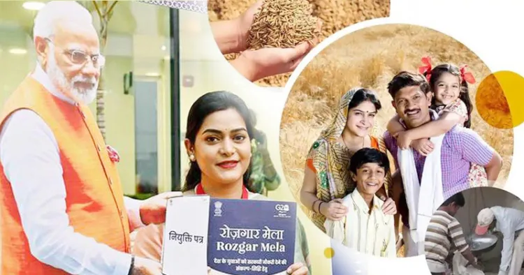 പ്രധാനമന്ത്രി ആവാസ് യോജനയിലൂടെ നാല് കോടി കുടുംബങ്ങളുടെ വീടെന്ന സ്വപ്‌നം യാഥാര്‍ത്ഥ്യമാക്കി. ഉജ്ജ്വല യോജനയിലൂടെ 10.33 കോടി വീടുകളില്‍ സൗജന്യ ഗ്യാസ് കണക്ഷന്‍ എത്തിച്ചു. സൗഭാഗ്യ യോജനയിലൂടെ 2.5 കോടി കുടുംബങ്ങള്‍ക്ക് വൈദ്യുതി എത്തിച്ചു. സ്വച്ഛ് ഭാരത് മിഷന്റെ ഭാഗമായി 12 കോടി ശൗചാലയങ്ങള്‍ നിര്‍മിച്ചു. ജല്‍ ജീവന്‍ മിഷനിലൂടെ 15.62 കോടി വീടുകളില്‍ പൈപ്പ് വെള്ളം എത്തിച്ചു. 50 കോടി പാവപ്പെട്ടവര്‍ക്ക് ആയുഷ്മാന്‍ ഭാരതിലൂടെ അഞ്ചു ലക്ഷം രൂപവരെ സൗജന്യ ആരോഗ്യ സംരക്ഷണം ഉറപ്പാക്കി. പ്രധാനമന്ത്രി ഗരീബ് കല്യാണ്‍ അന്ന യോജനയിലൂടെ 81 കോടിയിലധികം ഗുണഭോക്താക്കള്‍ക്ക് ഭക്ഷ്യസുരക്ഷയും മതിയായ പോഷകാഹാരവും ഉറപ്പാക്കി. പദ്ധതി പ്രകാരം ഓരോ വ്യക്തിക്കും ഓരോ മാസവും കേന്ദ്രം അഞ്ചു കിലോ എന്ന നിലയില്‍ സൗജന്യമായി ഭക്ഷ്യധാന്യങ്ങള്‍ നല്‍കുന്നു. രണ്ട് ലക്ഷം കോടി രൂപയിലധികം വാര്‍ഷിക ബജറ്റുള്ള പദ്ധതി 2028 ഡിസംബര്‍ വരെ നീട്ടി.