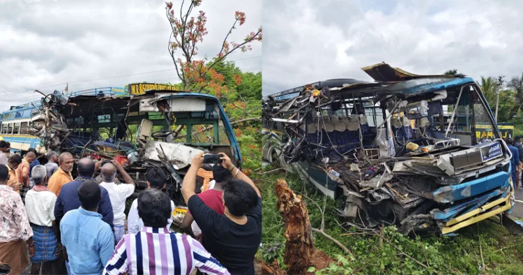 ചെങ്കോട്ടയിലേക്ക് പോകുകയായിരുന്ന ബസിന്റെ അമിത വേഗതയാണ് അപകടത്തിന് കാരണം. പരിക്കേറ്റ ചിലരുടെ നില ഗുരുതരമാണെന്നും വിവരമുണ്ട്. ഇവർ അടുത്തുള്ള വിവിധ ആശുപത്രികളിൽ ചികിത്സയിലാണ്. തെങ്കാശിക്കടുത്തുള്ള കാമരാജപുരത്താണ് അപകടം ഉണ്ടായിരിക്കുന്നത്. പോലീസും ഫയർഫോഴ്സും സംഭവ സ്ഥലത്തെത്തി രക്ഷാപ്രവർത്തനം പുരോഗമിക്കുകയാണ്.