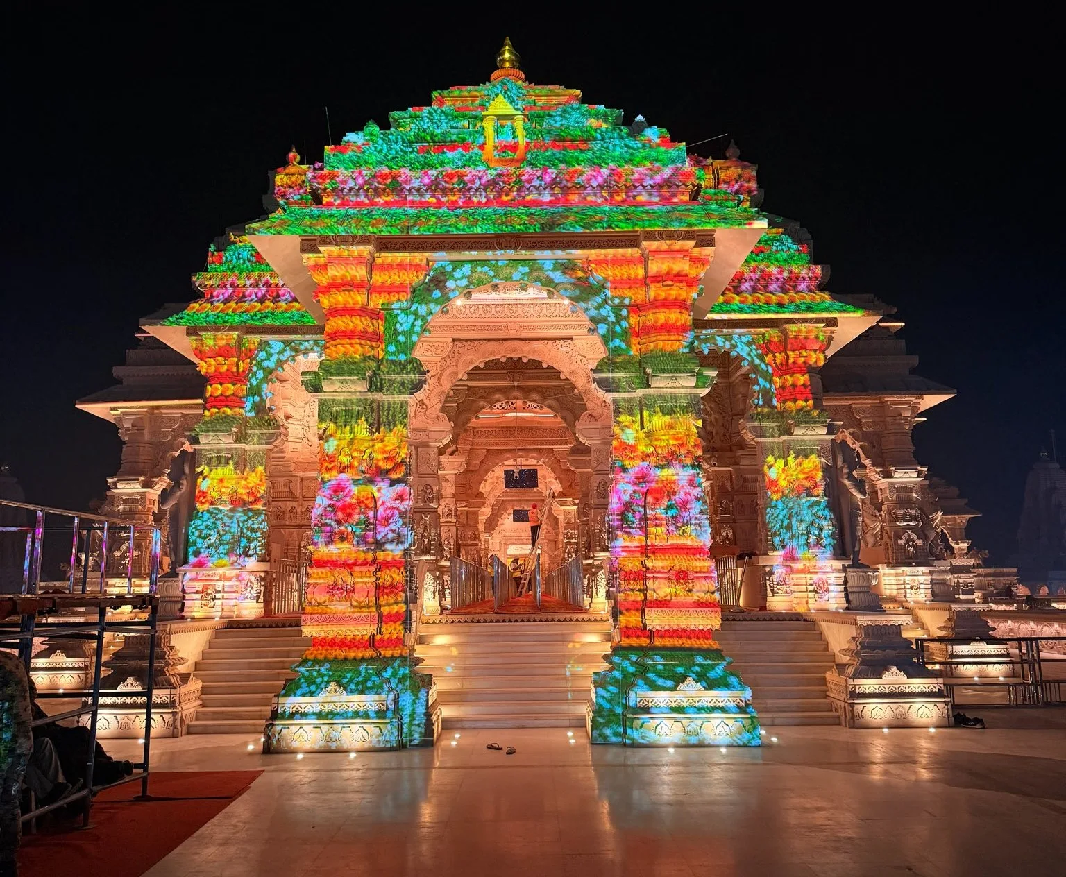 അയോദ്ധ്യ: നാളെ ധർമ്മ ധ്വജാരോഹണം നടക്കുന്ന അയോദ്ധ്യ രാമക്ഷേത്രത്തിന്റെ പരിസരമാകെ ദീപാലംകൃതമായി. പ്രധാനമന്ത്രി നരേന്ദ്രമോദി നാളെ കാലത്ത് 11.50 മണിക്കുശേഷം ആരംഭിക്കുന്ന ചടങ്ങിൽ ധ്വജാരോഹണം നിർവഹിക്കും. ആർഎസ്എസ് സർസംഘചാലക് ഡോ മോഹൻ ഭാഗവത്, ഉത്തർപ്രദേശ് മുഖ്യമന്ത്രി യോഗി ആദിത്യനാഥ് ഉൾപ്പെടെയുള്ളവർ ചടങ്ങിൽ പങ്കെടുക്കും.