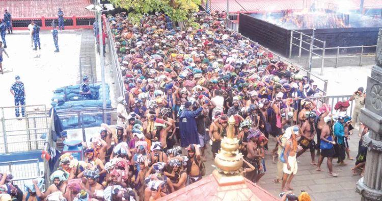 ഇടയ്ക്കിടെ നേരിയ മഴ പെയ്തതും തീര്ത്ഥാടകരുടെ വരവിനെ ബാധിച്ചില്ല. ഉച്ചസമയത്ത് ദര്ശനത്തിനായുള്ള ഭക്തരുടെ നിര വലിയ നടപ്പന്തലും കഴിഞ്ഞ് യു ടേണ് വരെ എത്തി. ദീപാരാധന വേളയിലും വലിയനടപ്പന്തല് നിരഞ്ഞ് തീര്ത്ഥാടകര് ഉണ്ടായിരുന്നു.