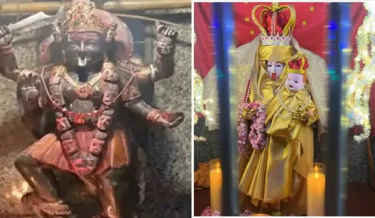 മുംബൈ: മുംബൈയിലെ ചെമ്പൂരിൽ സ്ഥിതി ചെയ്യുന്ന ഒരു കാളീക്ഷേത്രത്തിൽ വിഗ്രഹത്തിന് രൂപമാറ്റം വരുത്തി ക്രിസ്ത്യൻ വിശ്വാസത്തിലെ മാതാവിനോട് സാമ്യമുള്ള രൂപത്തിലാക്കിയ സംഭവം വലിയ വിവാദങ്ങൾക്കാണ് വഴിവെച്ചത്. ഭക്തർ വൈകാരികമായി പ്രതികരിച്ചതോടെ സംഭവത്തിൽ ക്ഷേത്രത്തിലെ പൂജാരിയെ പോലീസ് അറസ്റ്റ് ചെയ്യുകയും വിശദമായ അന്വേഷണം ആരംഭിക്കുകയും ചെയ്തു.സംഭവത്തിൽ, പരാതിയെ തുടർന്ന് നടപടിയെടുത്ത പോലീസ് വിഗ്രഹം അതിന്റെ യഥാർത്ഥ രൂപത്തിലേക്ക് പുനഃസ്ഥാപിച്ചു.
