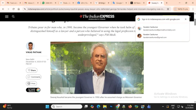 34 വയസ്സുള്ളപ്പോൾ സുപ്രീം കോടതിയിൽ മുതിർന്ന അഭിഭാഷകനായ അദ്ദേഹം 1990 ൽ മിസോറാം ഗവർണറായി നിയമിതനായപ്പോൾ ഗവർണറാകുന്ന ഏറ്റവും പ്രായം കുറഞ്ഞ വ്യക്തിയായി. അന്ന് വെറും 37 വയസ്സ് മാത്രമുള്ള അദ്ദേഹം 1993 വരെ ആ സ്ഥാനത്ത് തുടർന്നു.