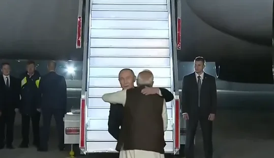 ന്യൂദൽഹി: റഷ്യൻ പ്രസിഡന്റ് വഌഡിമർ പുടിൻ തലസ്ഥാനത്തെത്തി. പാലം വിമാനത്താവളത്തിൽ എത്തി സ്വീകരിച്ച പ്രധാനമന്ത്രി മോദി അദ്ദേഹത്തെ ആലിംഗനം ചെയ്തു. വിമാനത്താവളത്തിൽ സ്വീകരിക്കാനെത്തിയിരുന്ന ഉയർന്ന ഉംേദ്യാഗസ്ഥരേയും വിഐപികളേയും പരിചയപ്പെടുത്തിയ ശേഷം പുടിനും മോദിയും ഒരേ വാഹനത്തിൽ പ്രധാനമന്ത്രിയുടെ ഔദ്യോഗിക വസതിയിലേക്ക് തിരിച്ചു.