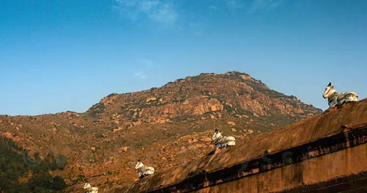 സൂര്യന്, വിശ്വാമിത്രന്, വരുണന്, ത്രിശൂലം എന്നീ ദേവതകള് അരുണാചലത്തിന്റെ നാല് അതിരുകളെയും പരിരക്ഷിക്കുന്നു. രക്തവര്ണമായ ഈ അചലത്തിന്റെ വടക്കുവശത്തെ വടവൃക്ഷത്തിനു ചുവട്ടിലാണേ്രത സിദ്ധവേഷത്തില് മഹാദേവന് വസിക്കുന്നത്.