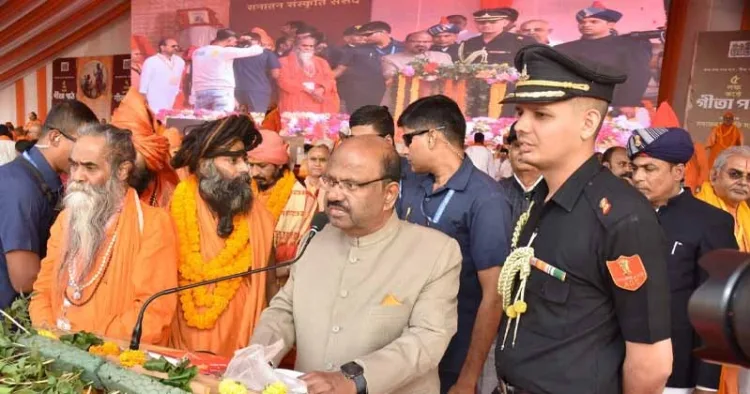 സനാതൻ സംസ്കൃതി സംസദ് കൊൽക്കത്തയിൽ നടത്തിയ ‘ഗീതാപഥം’ പരിപാടിയിൽ വൻസദസ്സിനെ അഭിവാദ്യം ചെയ്യുകയായിരുന്നു ഗവർണർ. ഭഗവദ്ഗീത ലക്ഷ്യബോധത്തിന് ആത്മീയവും പ്രായോഗികവുമായ മാർഗ്ഗനിർദ്ദേശം നൽകുന്നു. നമ്മുടെ അസ്തിത്വം നിലനിർത്തുന്നതിനുമുള്ള ദൗത്യത്തിൽ കാലാതീതമായ വഴികാട്ടിയാണ് ശ്രീമദ് ഭഗവദ്ഗീത – അദ്ദേഹം പറഞ്ഞു.