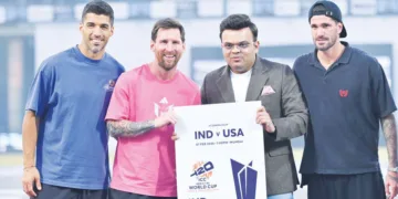 മെസി മടങ്ങി, തരംഗം തുടരും; ലിയോ മെസിക്ക് ട്വന്റി20 ലോകകപ്പ് ഭാരതം-അമേരിക്ക മത്സര ടിക്കറ്റ് സമ്മാനിച്ച് ജയ് ഷാ