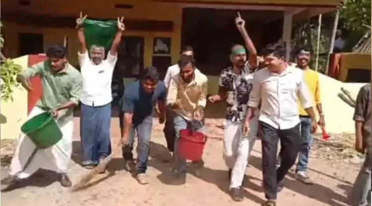 പട്ടികജാതിക്കാരനായ പ്രസിഡന്റ് ഭരിച്ച പഞ്ചായത്ത് ഓഫീസിന് മുന്നിൽ ചാണകവെള്ളം തളിച്ച് മുസ്ലീം ലീ​ഗ് പ്രവർത്തകർ