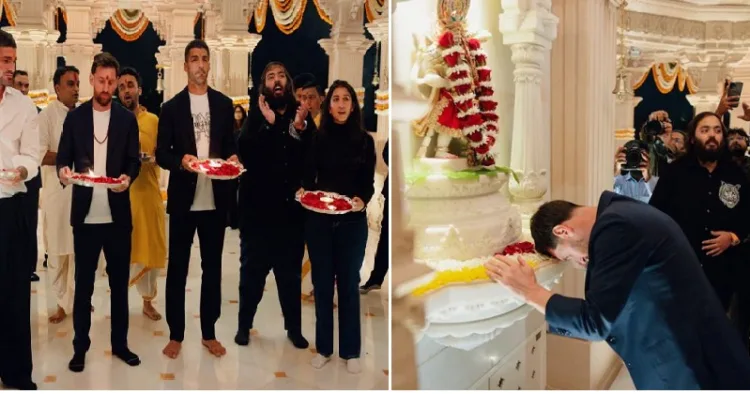 ഗുജറാത്തിലെ അംബാനിയുടെ റിഫൈനറിയും ഹരിതോര്ജ്ജപദ്ധതിയും സ്ഥിതിചെയ്യുന്ന ജാം നഗറില് മുകേഷ് അംബാനി-നിത അംബാനി ദമ്പതികളുടെ ഇളയ മകന് അനന്ത് അംബാനിയും ഭാര്യ രാധികാ മെര്ച്ചന്റുമായിരുന്നു മെസ്സിയെയും സുവാരസിനെയും ഡി പോളിനെയും സ്വീകരിച്ചത്. ഈ വേളയിലാണ് ഇവര് ആരതി ഉഴിയുന്ന ചടങ്ങില് സംബന്ധിച്ചത്. ഹിന്ദു മന്ത്രങ്ങള് ഉരുവിടാന് അനന്ത് അംബാനിയും ചേര്ന്നതും കൗതുകമായി. ഫുട്ബാള് താരങ്ങള് ഇവിടുത്തെ അംബേ മാതാ പൂജ, ഗണേഷ് പൂജ, ഹനുമാന് പൂജ, ശിവ അഭിഷേകം എന്നീ ചടങ്ങുകളില് സംബന്ധിച്ചു. ലോകസമാധാനത്തിനും ഐക്യത്തിനും വേണ്ടി ഇവര് പ്രാര്ത്ഥിച്ചു. ഹിന്ദു ദൈവങ്ങള്ക്ക് മുന്പില് ശിരസ്സ് കുനിച്ച് പ്രാര്ത്ഥിക്കുന്ന മെസ്സിയുടെ ചിത്രം വ്യത്യസ്തമായിരുന്നു.