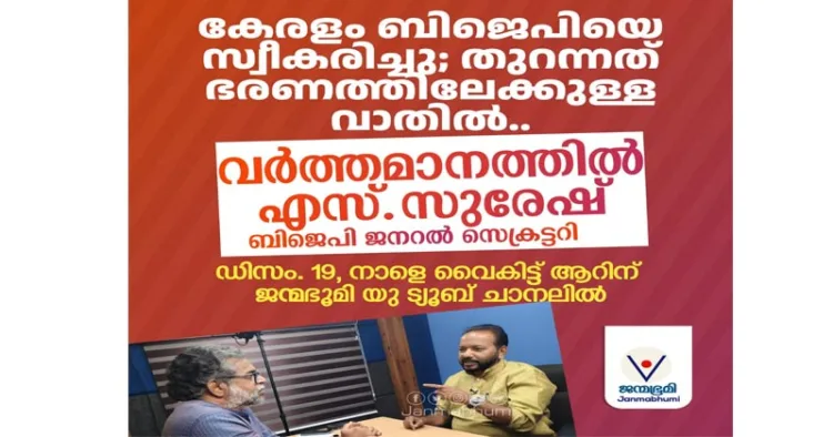 ബി ജെ പി ജനറല്‍ സെക്രട്ടറി എസ് സുരേഷുമായി അഭിമുഖം നാളെ