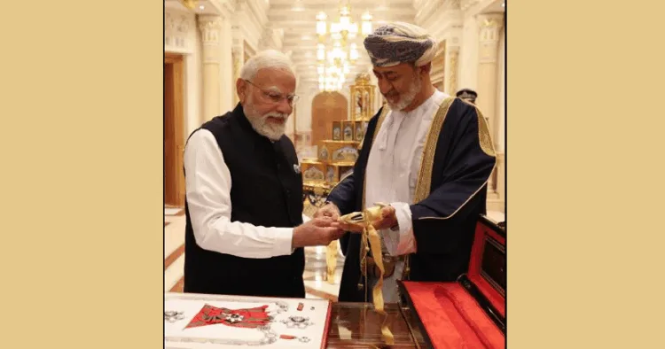 ഒമാന്റെ പരമോന്നത സിവിലിയന്‍ പുരസ്കാരമായ ‘ഓര്‍ഡര്‍ ഓഫ് ഒമാന്‍’ മോദിക്ക് സമ്മാനിച്ച് ഒമാന്‍ സുല്‍ത്താന്‍; മോദിക്ക് ഇത് 29ാമത്തെ പുരസ്കാരം