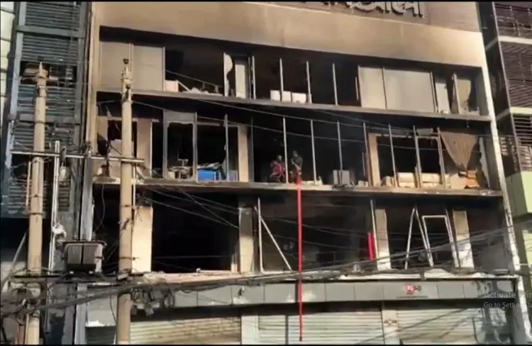 ധാക്കയിലെ ഷാബാഗ് കവലയ്ക്ക് സമീപമുള്ള കർവാൻ ബസാർ പ്രദേശത്തുള്ള ബംഗ്ലാദേശിലെ പ്രമുഖ ഇംഗ്ലീഷ് ഭാഷാ ദിനപത്രമായ ‘ഡെയ്ലി സ്റ്റാർ’ ഓഫീസ് ആക്രമിക്കുകയും തീയിടുകയും ചെയ്തു. നിരവധി പത്രപ്രവർത്തകരും ജീവനക്കാരും കെട്ടിടത്തിനുള്ളിൽ കുടുങ്ങി.