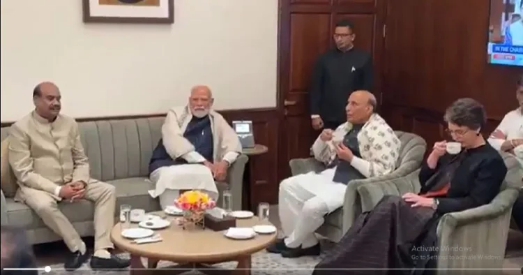 പ്രധാനമന്ത്രി നരേന്ദ്ര മോദി, കോൺഗ്രസ് ജനറൽ സെക്രട്ടറി പ്രിയങ്ക ഗാന്ധി, എൻസിപി നേതാവ് സുപ്രിയ സുലെ, ആർഎസ്പി നേതാവ് എൻ.കെ പ്രേമചന്ദ്രൻ തുടങ്ങി വിവിധ കക്ഷി നേതാക്കൾ ചടങ്ങിൽ പങ്കെടുത്തു. പുതിയ പാർലമെന്റ് മന്ദിരത്തിൽ അംഗങ്ങൾക്കായി ഒരു പ്രത്യേക ഹാൾ വേണമെന്ന ആവശ്യം എംപിമാർ പ്രധാനമന്ത്രിക്ക് മുന്നിൽ വെച്ചു. പഴയ പാർലമെന്റിൽ ഇത്തരമൊരു സൗകര്യമുണ്ടായിരുന്നുവെന്നും എംപിമാർ ചൂണ്ടിക്കാട്ടി.