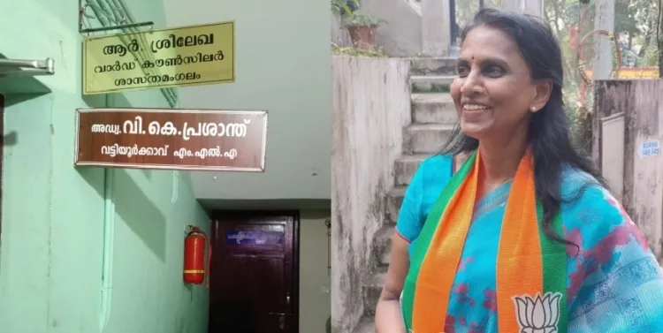 തിരുവനന്തപുരം : പുതിയ നെയിം ബോർഡ് സ്ഥാപിച്ച് R ശ്രീലേഖ. എംഎൽഎ വി.കെ പ്രശാന്തിന്റെ നെയിംബോർഡിന് മുകളിലാണ് കൗൺസിലർ ബോർഡ് സ്ഥാപിച്ചത്. നെയിം ബോർഡിൻറെ ചിത്രങ്ങളും സാമൂഹിക മാധ്യമത്തിൽ പോസ്റ്റ് ചെയ്തു.