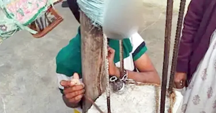 മാതാപിതാക്കള്‍ കൂലിപ്പണിക്കു പോകുന്ന സമയം കുട്ടി വീട്ടില്‍ നിന്നിറങ്ങിപ്പോകുകയും മറ്റുള്ളവരുടെ മൊബൈല്‍ ഫോണ്‍ മോഷ്ടിക്കുക തുടങ്ങിയ അനുസരണക്കേട് കാണിക്കുന്നതിനാലാണ് വീടിന്റെ ടെറസില്‍ കെട്ടിയിടുന്നതെന്നാണ് പറയുന്നത്. ഇക്കാരണത്താല്‍, കുട്ടിയുടെ പഠനം നിര്‍ത്തി, ജോലിക്ക് പോകുന്നതിന് മുമ്പ് കുട്ടിയെ ചങ്ങലയും പാഡ്ലോക്കും ഉപയോഗിച്ച് കെട്ടിയിടുമായിരുന്നു. ജോലി കഴിഞ്ഞ് തിരിച്ചെത്തിയ ശേഷം മാത്രമേ മോചിപ്പിക്കുമായിരുന്നുള്ളൂ. മാസങ്ങളായി തുടരുന്ന പ്രവര്‍ത്തി ശ്രദ്ധയില്‍പ്പെട്ട നാട്ടുകാര്‍ ജില്ലാ ശിശുക്ഷേമ സമിതിയെ വിവരമറിയിക്കുകയായിരുന്നു.