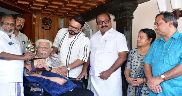 തിരുവനന്തപുരം: താരസംഘടന അമ്മയുടെ പ്രഥമ സെക്രട്ടറിയും ഗാന്ധിഭവന് കുടുംബാംഗവുമായിരുന്ന അന്തരിച്ച ചലച്ചിത്രതാരം ടി.പി. മാധവന്റെ ഒന്നാം ചരമവാര്ഷികത്തോടനുബന്ധിച്ച് ചലച്ചിത്രലോകത്തെ സമഗ്രസംഭാവനകള്ക്കായി ഗാന്ധിഭവന് ഏര്പ്പെടുത്തിയ പ്രഥമ ഗാന്ധിഭവന്-ടി.പി. മാധവന് നാഷണല് അവാര്ഡ് പ്രശസ്ത നടന് ജഗതി ശ്രീകുമാറിന് സമ്മാനിച്ചു. 25000/ രൂപയും ഫലകവും അടങ്ങുന്ന അവാര്ഡ് ഗാന്ധിഭവന് സ്ഥാപകനും മാനേജിംഗ് ട്രസ്റ്റിയുമായ പുനലൂര് സോമരാജന് ജഗതി ശ്രീകുമാറിന്റെ തിരുവനന്തപുരത്തെ വസതിയിലെത്തി സമ്മാനിച്ചു.