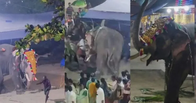 സംഭവത്തിൽ രണ്ട് പാപ്പാന്മാര്ക്ക് പരുക്കേറ്റിട്ടുണ്ട്. പാപ്പാന്മാരായ ഉണ്ണി, രാഹുൽ എന്നിവർക്കാണ് പരുക്കേറ്റത്. ചൊവ്വാഴ്ച രാത്രി 10 മണിയോടെയാണ് സംഭവം. കൊല്ലത്ത് നിന്നെത്തിച്ച ശിവൻ എന്ന ആനയാണ് ഉത്സവത്തിനിടെ ഇടഞ്ഞത്. പട്ടണ പ്രദക്ഷിണം പൂർത്തിയാക്കി ക്ഷേത്ര മൈതാനത്ത് നിൽക്കുമ്പോൾ ആന പെട്ടെന്ന് അക്രമാസക്തനാവുകയായിരുന്നു.