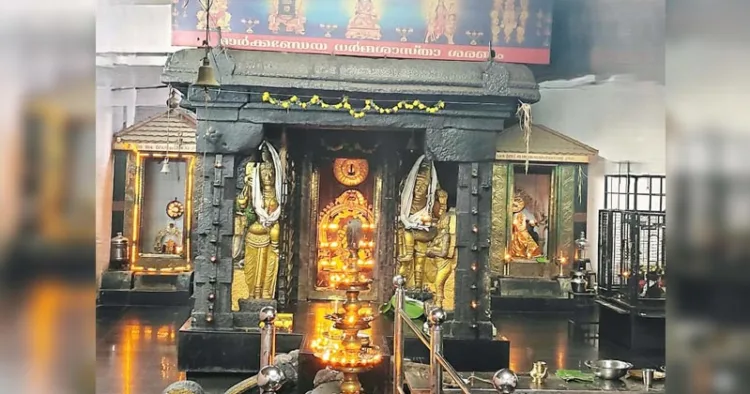 ശ്രീകോവിലിന്റെ മധ്യത്തിലുള്ള ശാസ്താ പ്രതിഷ്ഠ വലതു കൈയില് ശിവലിംഗവും, ഇടതുകാല് വളച്ച് രണ്ടു വശത്തേക്ക് ഒരു അരപ്പട്ടയും വച്ചിരിക്കുന്നു. ശാസ്താ പ്രതിഷ്ഠയില് സാധാരണയായി വലതു കൈയില് അഭയ മുദ്രയ്ക്ക് പകരം ശിവലിംഗം കാണപ്പെടുന്ന വളരെ അപൂര്വമായ പ്രതിഷ്ഠയാണിത്.