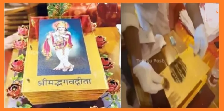 മാംഗളൂരു: ദക്ഷിണേന്ത്യയിലെ പേര് കേട്ട ശ്രീകൃഷ്ണ ക്ഷേത്രമാണ് കര്ണ്ണാടകയിലെ ഉഡുപ്പിയിലുള്ള ഉഡുപ്പി ശ്രീകൃഷ്ണക്ഷേത്രം. ഈയിടെ ഒരു ഭക്തന് ഈ ക്ഷേത്രത്തിന് സമര്പ്പിച്ച സ്വര്ണ്ണത്തില് കൊത്തിയ ഭഗവദ്ഗീത വാര്ത്തകളില് ഇടം പിടിച്ചിരിക്കുകയാണ്. സ്വര്ണ്ണപ്പാളികളില് ഭഗവദ്ഗീത കൊത്തിയെടുത്തിരിക്കുകയാണ്. ഈ സ്വര്ണ്ണ ഭഗവദ്ഗീതയുടെ വില രണ്ട് കോടി രൂപയാണ്.