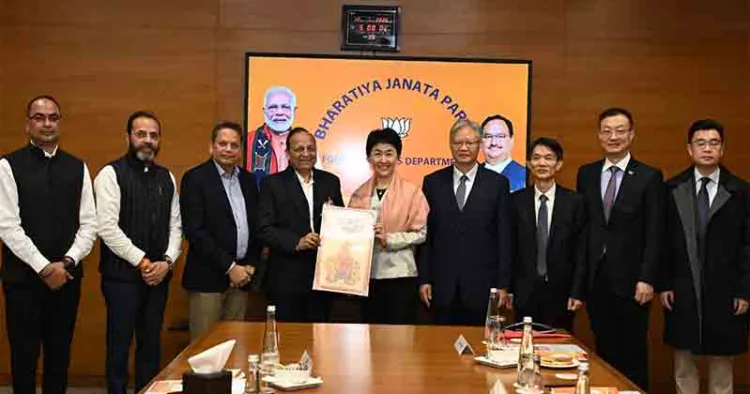 സന്ദർശന വിവരം വിദേശകാര്യ വകുപ്പിന്റെ ചുമതലയുള്ള ബിജെപി നേതാവ് വിജയ് ചൗതൈവാലെയാണ് എക്സിലൂടെ അറിയിച്ചത്. ബിജെപിയും സിപിസിയും തമ്മിലുള്ള ചർച്ചകൾ മുന്നോട്ടുകൊണ്ടുപോകുന്നതിനുള്ള മാർഗങ്ങളെക്കുറിച്ചും സംഭാഷണങ്ങളും ആശയവിനിമയങ്ങളും മെച്ചപ്പെടുത്തുന്നതിനുള്ള വഴികളെക്കുറിച്ചും ഇരുപക്ഷവും ചർച്ച ചെയ്തതായി ചൗതൈവാലെ കുറിച്ചു.