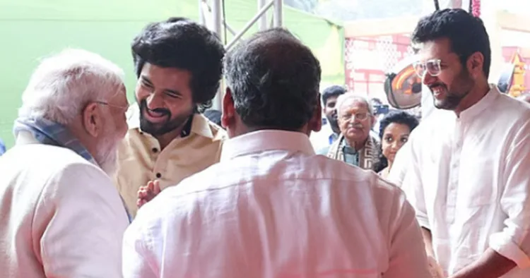 ന്യൂദല്ഹി: പരാശക്തിയുമായി ബന്ധപ്പെട്ട വിവാദങ്ങൾ തുടരുന്നതിനിടെ പ്രധാനമന്ത്രി നരേന്ദ്ര മോദിയെ കണ്ട് നടന് ശിവകാര്ത്തികേയന്. ദല്ഹിയില് നടന്ന പൊങ്കല് ആഘോഷത്തില് പങ്കെടുക്കാനെത്തിയപ്പോഴാണ് ശിവകാര്ത്തികേയന് പ്രധാനമന്ത്രിയുമായി കൂടിക്കാഴ്ച്ച നടത്തിയത്. കേന്ദ്രമന്ത്രി എല് മുരുകന്റെ വസതിയില് വെച്ചാണ് പൊങ്കല് ആഘോഷം നടന്നത്.