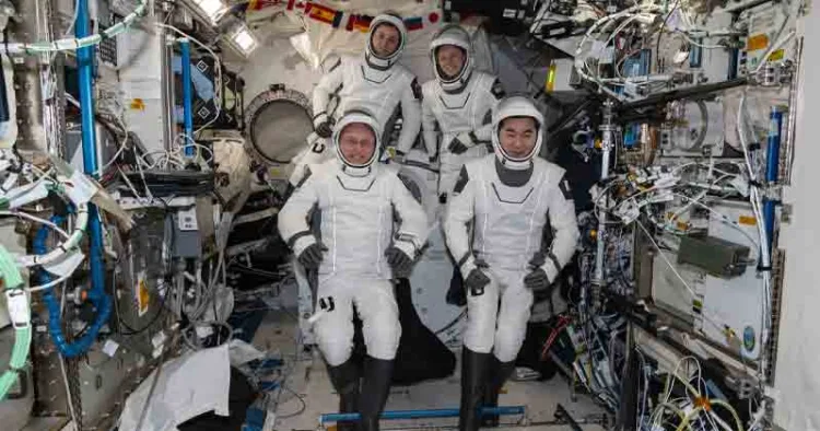 നാസയുടെ ബഹിരാകാശ സഞ്ചാരികളായ സെന കാർഡ്മൻ, മൈക്ക് ഫിൻകെ ജപ്പാൻ ബഹിരകാശ ഏജൻസി ജാക്സയുടെ കിമിയ യൂവി, റഷ്യൻ ബഹിരാകാശ ഏജൻസി റോസ്കോസ്മോസിന്റെ ഒലേഗ് പ്ലാറ്റൊനോവ് എന്നിവരാണ് സംഘത്തിലുണ്ടായിരുന്നത്. ബഹിരാകാശ നിലയത്തില് നിന്ന് അണ്ഡോക്ക് ചെയ്ത ശേഷം പത്തരം മണിക്കൂര് സമയമെടുത്താണ് ഡ്രാഗണ് പേടകത്തിന്റെ ലാന്ഡിംഗ്. പ്രത്യേക ബോട്ടുപയോഗിച്ച് ഡ്രാഗണ് എന്ഡവര് പേടകത്തെ വീണ്ടെടുത്ത് യാത്രികരെ സുരക്ഷിതരായി കരയിലെത്തിച്ചു. നാല് ബഹിരാകാശ സഞ്ചാരികളെയും വിശദമായ ആരോഗ്യ പരിശോധനകള്ക്ക് വിധേയരാക്കും.