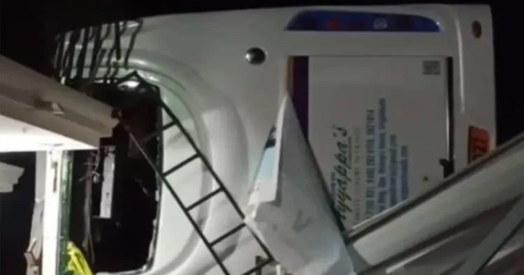 റോഡിന്റെ സമീപത്തുള്ള വീടിന്റെ വശത്തേക്ക് ബസ് മറിയുകയായിരുന്നു. ഡ്രൈവർ ഉറങ്ങിപ്പോയതാണ് അപകടകാരണമെന്നാണ് പ്രാഥമിക നിഗമനം.