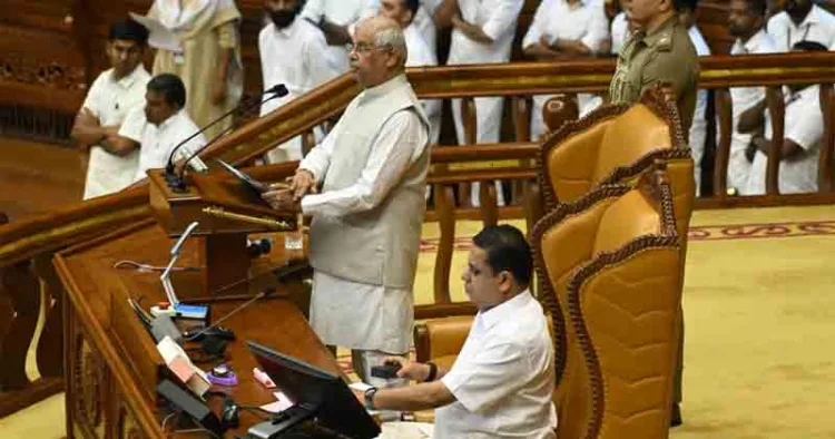 ഖണ്ഡിക 12 ലെ ‘ഇത്തരം സാമൂഹികവും സ്ഥാപനപരവുമായ നേട്ടങ്ങൾ കൈവരിച്ചിട്ടും, ധനകാര്യ ഫെഡറലിസത്തിന്റെ ഭരണഘടനാപരമായ തത്വങ്ങളെ ദുർബലപ്പെടുത്തുന്ന യൂണിയൻ ഗവൺമെന്റിന്റെ തുടർച്ചയായ പ്രതികൂല നടപടികളുടെ ഫലമായി കേരളം ഗുരുതരമായ സാമ്പത്തിക ഞെരുക്കം നേരിട്ടുകൊണ്ടിരിക്കുകയാണ്. ഈ ഭാഗം ഗവർണർ ഒഴിവാക്കിയിരുന്നു.