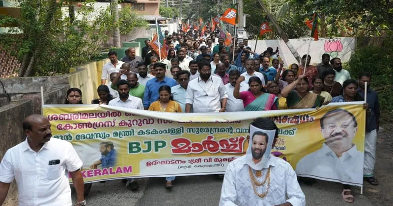 എസ്ഐടി നാടകം അവസാനിപ്പിച്ച് കേസ് സിബിഐക്ക് വിടണമെന്നും യഥാര്ത്ഥ കുറ്റവാളികളെ പുറത്ത് കൊണ്ടുവരണമെന്നുമാണ് ബിജെപി ആവശ്യപ്പെടുന്നതെന്നും മുരളീധരന് പറഞ്ഞു. തിരുവനന്തപുരം സിറ്റി ജില്ലാ പ്രസിഡന്റ് കരമന ജയന്, ചെമ്പഴന്തി ഉദയന് ,പാപ്പനംകോട് സജി ,ദിവ്യ എസ് പ്രദീപ് ,സുനില് ,കഴക്കൂട്ടം അനില് ,കരിക്കകം മണികണ്ഠന് എന്നിവര് പ്രതിഷേധ മാര്ച്ചിന് നേതൃത്വം നല്കി.