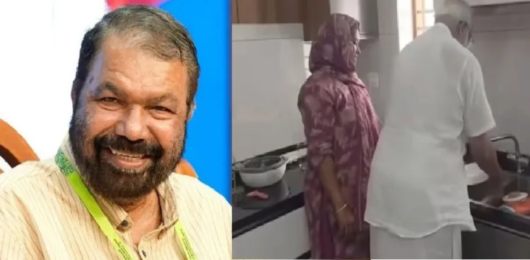 10 വർഷം കേരളം ഭരിച്ച സർക്കാരിന്റെ അവസ്ഥ ; വീട്ടമ്മയ്‌ക്ക് അടുക്കളയിൽ കയറി പാത്രം കഴുകി കൊടുത്ത് എം എ ബേബി