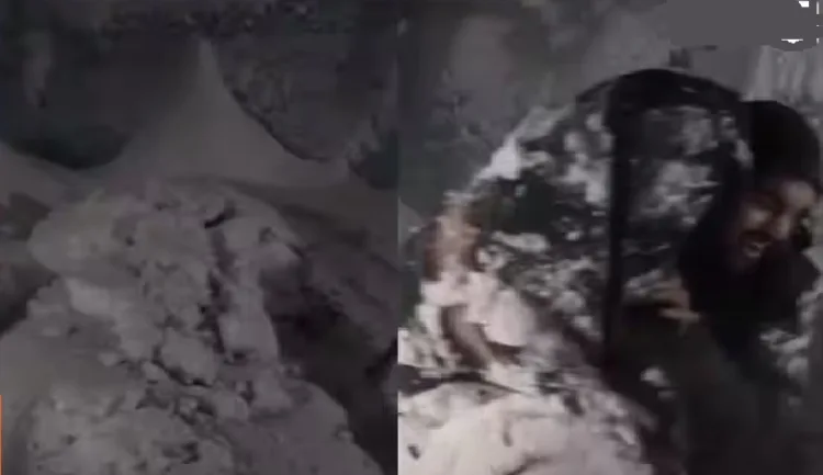 മഞ്ഞ് മൂടിയ ബ്ലാങ്കറ്റ് പതുക്കെ മാറ്റുന്നതും ,അതിനുള്ളിൽ നിന്ന് സൈനികൻ പുറത്ത് വരുന്നതുമാണ് ദൃശ്യങ്ങളിലുള്ളത് .