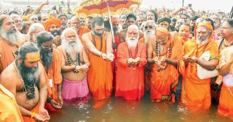 ഇന്നലെ അമൃതസ്നാനത്തിന് നാഗസംന്യാസിമാര് ഉള്പ്പടെ ആയിരങ്ങളാണ് നിളയില് മുങ്ങിനിവര്ന്നത്. നാവാമുകുന്ദ ക്ഷേത്രത്തില് നിന്നും ഹരഹര മഹാദേവാ… ജയ്ശ്രീറാം… ജയ്ഗംഗാ മാതാ തുടങ്ങിയ മന്ത്രജപങ്ങളോടെ മഹാമണ്ഡലേശ്വര് സ്വാമി ആനന്ദവനം ഭാരതിയുടെ നേതൃത്വത്തിലുള്ള സംന്യാസിവര്യന്മാരും ഭക്തരും ധര്മ്മസേതുവഴി ആരതി ഘാട്ടിലേക്കുള്ള യാത്ര ആരംഭിച്ചു. ആരതി ഘാട്ടില് എത്തിയ സംന്യാസിമാര്ക്കൊപ്പം ഭക്തരും നിളയെ വന്ദിച്ച് അമൃതസ്നാനം നിര്വഹിച്ചു.