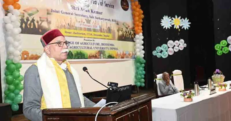 ഇറോയിസെംബയിലെ കാര്‍ഷിക കോളേജിന്റെ ഓഡിറ്റോറിയത്തില്‍ ”സംഘവഴി: സേവനത്തിന്റെ 100 വര്‍ഷങ്ങള്‍” എന്ന വിഷയത്തില്‍ സംഘടിപ്പിച്ച യുവ സംവാദ് (യുവജന ഇടപെടല്‍) പരിപാടിയെ അഭിസംബോധന ചെയ്യുകയായിരുന്നു അദ്ദേഹം.