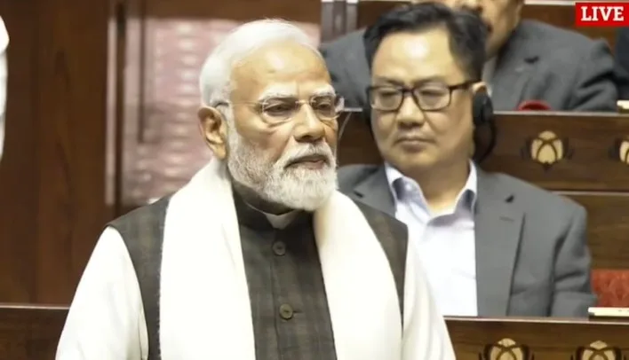 പ്രധാനമന്ത്രി നരേന്ദ്രമോദി രാജ്യസഭയിൽ രാഷ്ട്രപതിയുടെ നയപ്രസംഗത്തിന് നന്ദി പ്രമേയത്തിൽ മറുപടി പ്രസംഗത്തിന് എഴുന്നേറ്റപ്പോൾമുതൽ ബഹളമുണ്ടാക്കി. സഭനടത്തിക്കില്ല എന്നു മുദ്രാവാക്യം വിളിച്ച് പ്രതിപക്ഷം രാജ്യസഭയിലും ബഹളം വെക്കുകയായിരുന്നു. രാജയസഭയിൽ പ്രതിപക്ഷനേതാവായ കോൺഗ്രസ് അദ്ധ്യക്ഷൻ മല്ലികാർജ്ജുന തന്നെയാണ് മുന്നിൽനിന്ന് ബഹളം നയിക്കുന്നത്.