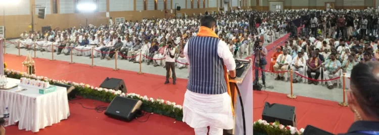 ഇതിലേക്ക് കേരളത്തിലെ യുവാക്കള്ക്ക് വളരെയേറെ കാര്യങ്ങള് ചെയ്യാന് സാധിക്കും. വന്ദേഭാരത് അമൃത് ഭാരത് ട്രെയിനുകളും റെയില് കോറിഡോറുമാടക്കം നിരവധി പദ്ധതികളാണ് കേന്ദ്രം കേരളത്തിനായി അനുവദിച്ചത്. സദാനന്ദന് മാസ്റ്ററുടെ പാര്ലമെന്റിലെ പ്രസംഗം രാജ്യംമുഴുവന് ആവേശത്തോടെയാണ് കേട്ടത്. എങ്ങിനെയാണ് കേരളത്തിലെ പ്രവര്ത്തകര് സംഘടനാ പ്രവര്ത്തനം നടത്തുന്നത് രാജ്യം മുഴുവന് അത്ഭിത്തോടെയും ആദരവോടെയും നോക്കികണ്ടു. ഞാന് രാഹുല് ഗാന്ധിയോട് ചോദിക്കുന്ന താങ്കള് എല്ലായിപ്പോഴും ഭരണഘടന ഉയര്ത്തി സംസാരിക്കുന്നുണ്ടല്ലോ ഭരണഘടനയുടെ ഏത് വകുപ്പിലാണ് മറ്റ് പ്രത്യയ ശാസ്ത്രത്തില് വിശ്വസിക്കുന്നവരുടെ കാല് വെട്ടാന് പറയുന്നത്. കേരളത്തിലെ ജനങ്ങള് അതിനുള്ള മറുപടിയാണ് രാഹുല് ഗാന്ധിയില് നിന്ന് പ്രതീക്ഷിക്കുന്നത്.