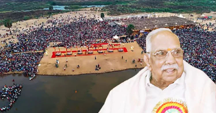 അതിന് മുന്നോടിയായി ഈ വര്ഷത്തെ മാഘ ഉത്സവം കഴിഞ്ഞ വര്ഷങ്ങളേക്കാള് വിപുലമായി നടത്തണമെന്ന ചിന്ത മാത്രമേ സംഘാടകരില് തുടക്കത്തില് ഉണ്ടായിരുന്നുള്ളു. പ്രതിസന്ധികളില് പോരാടി ഉത്തര ഭാരതത്തില് ഹിന്ദു സമാജത്തിന്റെ ആത്മവിശ്വാസം കെടാതെ സൂക്ഷിച്ച അഖാഡ പാരമ്പര്യത്തിന്റെ ഭാഗമായി ആനന്ദവനം ഭാരതി സ്വാമികളെ കേരളം കേന്ദ്രീകരിച്ച് ദക്ഷിണ ഭാരതത്തിന്റെ ധാര്മിക പ്രവര്ത്തനങ്ങള്ക്ക് നേതൃത്വം നല്കാന് മഹാമണ്ഡലേശ്വരനായി അവരോധിച്ച, ജുന അഖാഡയുടെ പരമാചാരനും ഹിന്ദു ധര്മാചാര്യ സഭയുടെ അധ്യക്ഷനുമായ അവധേശാനന്ദഗിരി മഹാരാജിന്റെ ദീര്ഘവീക്ഷണവും, സ്വാമിജിയുടെ ഗുരുനിഷ്ഠയും ഒരു ദിവ്യ രചനയുടെ പ്രത്യക്ഷ അനുഭവമായി നമുക്ക് കാണാന് സാധിക്കും. മാഘ മഹോത്സവത്തിന്റെ സഭാപതിയായി അവരോധിക്കപ്പെട്ട ആനന്ദവനം സ്വാമിയുടെ നേതൃത്വം, സമാജത്തില് ആവേശത്തിര സൃഷ്ടിച്ചു. സ്വാമികളുടെ തന്നെ വാക്കുകളില് പറഞ്ഞാല്, ”മൂന്നുവര്ഷം കഴിയുമ്പോള് ഉജ്ജയിനിലെ സിംഹസ്ഥ കുംഭയുടെ അതേസമയത്ത് അതേ സമയരേഖയില് വരുന്ന തിരുനാവായ എന്ന പുണ്യ തീര്ത്ഥത്തില് പ്രയാഗ് രാജിലെ കുംഭമേളയ്ക്ക് സമാനമായി മഹാമാഘ മഹോത്സവം നടത്താനാണ് ചിന്തിച്ചത്. എന്നാല്, പ്രകൃതിയും പരമ്പരയും കാലവും ഈ വര്ഷം തന്നെ മഹോത്സവത്തെ മഹാമാഘ മഹോത്സവം ആയി പരിണമിപ്പിച്ചു. ഒരു പരമ്പരയുടെ തപസ്, ആധ്യാത്മിക സാമൂഹിക പ്രസ്ഥാനങ്ങളുടെ നിരന്തരമായ പ്രവര്ത്തനം, ത്രിമൂര്ത്തികളുടെയും സപ്ത സിന്ധുക്കളുടെയും അനുഗ്രഹാശിസ്സുകള്, ഹൈന്ദവ സമാജത്തില് പരിവര്ത്തനത്തിനായുള്ള ‘അടങ്ങാത്ത ആഗ്രഹം, എല്ലാം കൂടി മൂന്ന് വര്ഷത്തെ യോജനയെ മൂന്ന് ദിവസം കൊണ്ട് ലക്ഷ്യപ്രാപ്തിയില് എത്തിച്ച്, പ്രകൃതി ഇതിനെ മഹാമാഘമാക്കി മാറ്റി.”