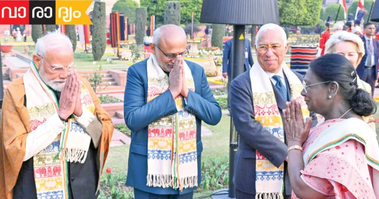 ഉപരാഷ്ട്രപതി സി.പി. രാധാകൃഷ്ണനും പ്രധാനമന്ത്രി നരേന്ദ്ര മോദിയും മന്ത്രിമാരുമൊക്കെ എത്തി. അറിയിപ്പ് വന്നു. രാഷ്ട്രപതി വരാറായി. എല്ലാവരും പുല്ത്തകിടിക്ക് വെളിയില് നില്ക്കണം. അങ്ങനെ നില്ക്കുമ്പോഴാണ് കേരളത്തിന്റെ കേന്ദ്രമന്ത്രി ജോര്ജ് കുര്യനെ കണ്ടതും സംസാരിച്ചതും. അദ്ദേഹത്തിന്റെ ഇരിപ്പിടം കേന്ദ്ര മന്ത്രിമാര്ക്കൊപ്പമായതിനാല് പിന്നീട് കാണാന് കഴിഞ്ഞില്ല.