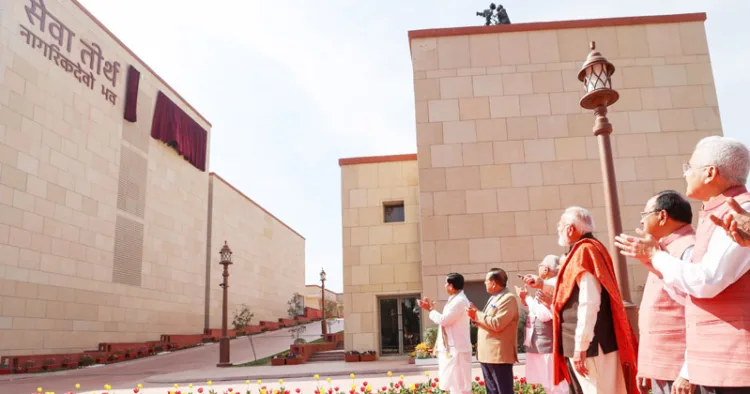 പ്രധാനമന്ത്രിയുടെ ഓഫീസ് ഉള്‍പ്പെടുന്ന സേവാതീര്‍ത്ഥും ഒന്ന്, രണ്ട് കര്‍ത്തവ്യഭവനുകളുമാണ് വെള്ളിയാഴ്ച പ്രധാനമന്ത്രി നരേന്ദ്രമോദി രാഷ്‌ട്രത്തിന് സമര്‍പ്പിച്ചത്. ആധുനിക സാങ്കേതിക വിദ്യയ്‌ക്കൊപ്പം ഭാരതത്തിന്റെ പാരമ്പര്യവും സംസ്‌കാരവും വിളിച്ചോതുന്ന രീതിയിലാണ് കെട്ടിടങ്ങളുടെ നിര്‍മാണം. അത്യാധുനിക സൗകര്യങ്ങളുള്ള മൂന്ന് കെട്ടിടങ്ങളില്‍ ഒന്നായ സേവാതീര്‍ത്ഥം ഒന്നിലാണ് പ്രധാനമന്ത്രിയുടെ ഓഫീസ് പ്രവര്‍ത്തിക്കുന്നത്. സേവാതീര്‍ത്ഥം രണ്ട്, മൂന്ന് കെട്ടിടങ്ങള്‍ കാബിനറ്റ് സെക്രട്ടേറിയറ്റിന്റെയും ദേശീയ സുരക്ഷാ ഉപദേഷ്ടാവിന്റെ ഓഫീസിന്റെയും പുതിയ ആസ്ഥാനങ്ങളാണ്. ധനമന്ത്രാലയം, പ്രതിരോധമന്ത്രാലയം, ആരോഗ്യ- കുടുംബക്ഷേമ മന്ത്രാലയം, കോര്‍പറേറ്റ് കാര്യമന്ത്രാലയം, വിദ്യാഭ്യാസ മന്ത്രാലയം, സാംസ്‌കാരിക മന്ത്രാലയം, നിയമ-നീതി മന്ത്രാലയം, വാര്‍ത്താ വിനിമയ-പ്രക്ഷേപണ മന്ത്രാലയം, കൃഷി-കര്‍ഷകക്ഷേമ മന്ത്രാലയം, രാസവസ്തു-രാസവള മന്ത്രാലയം, ഗോത്രവര്‍ഗ മന്ത്രാലയം എന്നിവയുള്‍പ്പെടെയുള്ള പ്രധാന മന്ത്രാലയങ്ങള്‍ ഒന്ന്, രണ്ട് കര്‍ത്തവ്യ ഭവനുകളിലായി പ്രവര്‍ത്തിക്കും.
