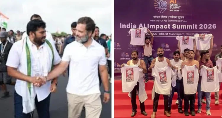 യൂത്ത് കോൺഗ്രസുകാർ എ ഐ ഉച്ചകോടി വേദിയിൽ മേൽവസ്ത്രമൂരി പ്രതിഷേധിക്കുകയായിരുന്നു. രാജ്യത്തിന്റെ പരമാധികാരത്തിൽ വിട്ടുവീഴ്ച ചെയ്തതായി കോൺഗ്രസ് അവകാശപ്പെടുന്ന നിർദ്ദിഷ്ട ഭാരത-യുഎസ് വ്യാപാര കരാറിനെതിരെയായിരുന്നു പ്രതിഷേധം. രാഹുൽ ഗാന്ധിയുടെ ഭാരത് ജോഡോ യാത്രയിൽ നിന്നുള്ള ഒരു പഴയ ചിത്രം പുറത്തുവന്നതാണ് പാർട്ടിയെ കാര്യങ്ങൾ കൂടുതൽ വഷളാക്കിയത്, അതിൽ പ്രതിപക്ഷ നേതാവ് നഗ്നപ്രതിഷേധത്തിൽ പ്രതിയായ നരസിംഹ യാദവിനോടൊപ്പം ആഹ്ലാദ ഭരിതനായി കാണപ്പെടുന്നു.