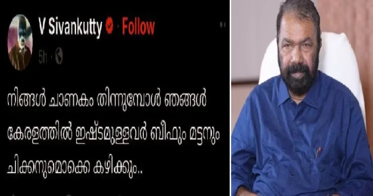 തിരുവനന്തപുരം: മന്ത്രി ശിവന് കുട്ടിക്ക് കേരളസ്റ്റോറിയ്ക്കെതിരെ ആഞ്ഞടിച്ചതിന്റെ ഭാഗമായി ഒരു കാര്യം പറഞ്ഞു.. “നിങ്ങള് ചാണകം തിന്നുമ്പോള് ഞങ്ങള് കേരളത്തില് ഉള്ളവര് ഇഷ്ടമുള്ള ബീഫും മട്ടനും ചിക്കനും ഒക്കെ കഴിയ്ക്കും. ” ശിവന്കുട്ടിയ്ക്ക് നല്ല കയ്യടി കിട്ടി. പക്ഷെ എന്തുകൊണ്ടായിരിക്കാം ശിവന് കുട്ടി ഈ ലിസ്റ്റില് പന്നിമാംസം കഴിയ്ക്കും എന്ന് പറഞ്ഞില്ല എന്ന ചോദ്യമുയര്ത്തുകയാണ് ചില ട്രോളന്മാര് സമൂഹമാധ്യമങ്ങളില്.