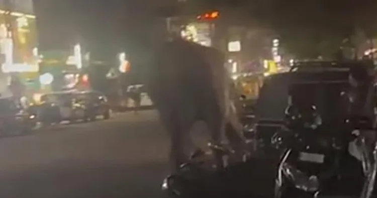 റോഡിന്റെ വശങ്ങളില് പാര്ക്ക് ചെയ്തിരുന്ന വാഹനങ്ങള്ക്കും ആന കേടുപാടുകള് വരുത്തി. ഏറെ നേരത്തെ പരിശ്രമത്തിന് ശേഷം ആനയെ തളച്ചു.