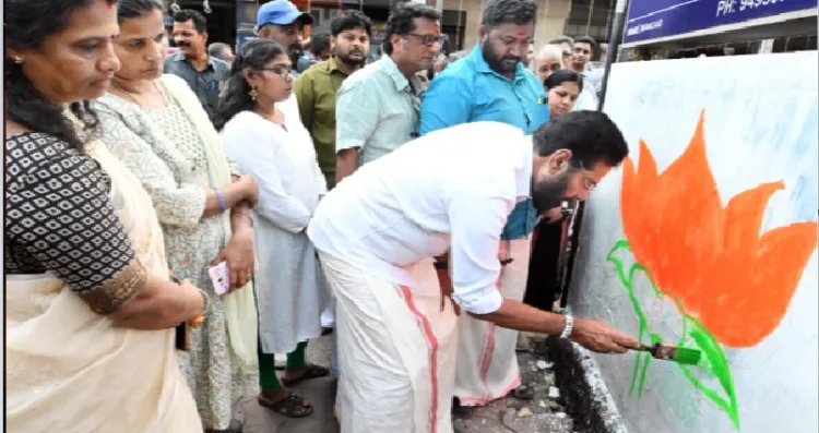 തിരുവനന്തപുരം സിറ്റി ജില്ലാ പ്രസിഡണ്ട് കരമന ജയൻ നാളികേരം ഉടച്ച് താമര ചിഹ്നം വരച്ച് ചുമര് എഴുതിയാണ് തിരുവനന്തപുരം മണ്ഡലത്തിലെ ബിജെപി യുടെ പ്രചാരണ പ്രവർത്തനങ്ങളുടെ ഉദ്ഘാടനം നിർവഹിച്ചത്.