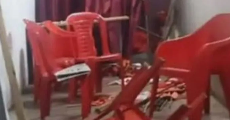 ഇതില് പ്രതിഷേധിച്ച് കോണ്ഗ്രസ് പ്രകടനം പ്രകടനം നടത്തി.ഇതിനിടെ ആണ് സിപിഎം ഓഫീസിനകത്തെ കസേരകളും ഫ്ലക്സുകളും നശിപ്പിച്ചത്. .