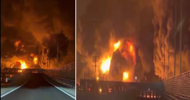 ടെഹ്റാന്: ഇറാനിലെ നിരവധി എണ്ണപ്പാടങ്ങളില് ബോംബിട്ട് ഇസ്രയേല്. ടെഹ്റാനിലെ അഞ്ച് എണ്ണ ശേഖരിച്ച ഡിപ്പോകളിലാണ് ബോംബിട്ടത്. ഓറഞ്ച് നിറത്തില് കത്തുന്ന എണ്ണപ്പാടങ്ങളും അതില് നിന്നും ഉയരുന്ന കറുത്ത പുകയും ഇസ്രയേല് ആക്രമണത്തിന്റെ രൂക്ഷത വെളിപ്പെടുത്തുന്നു. ബോംബിങ്ങിന്റെ ശക്തിയില് തൊട്ടടുത്ത കെട്ടിടങ്ങളിലെ ജനാലകള് അടര്ന്ന് തെറിച്ചുവീഴുന്നത് കാണാമായിരുന്നു.