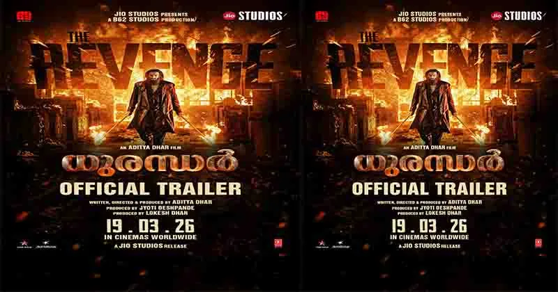 ജിയോ സ്റ്റുഡിയോസും ബി 62 സ്റ്റുഡിയോസും ചേർന്ന് നിർമ്മിക്കുന്ന, രൺവീർ സിംഗ് നായകനായ ‘ധുരന്ധർ പ്രതികാരം’ ചിത്രത്തിന്റെ മലയാളം ട്രെയ്ലർ പുറത്ത്. ആദിത്യ ധർ സംവിധാനം ചെയ്ത ‘ദുരന്ധർ’ എന്ന ചിത്രത്തിന്റെ രണ്ടാം ഭാഗം ആയാണ് ‘ധുരന്ധർ പ്രതികാരം’ പുറത്തു വരുന്നത്. കഴിഞ്ഞ ദിവസം പുറത്ത് വന്ന ചിത്രത്തിന്റെ ഹിന്ദി ട്രെയിലറിന് ഗംഭീര പ്രേക്ഷക പ്രതികരണമാണ് ലഭിച്ചത്. ആദ്യ ഭാഗത്തേക്കാൾ വലിയ വരവേൽപ്പ് ചിത്രത്തിന്റെ രണ്ടാം ഭാഗത്തിന് ലഭിക്കുമെന്ന സൂചനയാണ് ട്രെയ്ലറിനു ലഭിക്കുന്ന പ്രതികരണങ്ങൾ സൂചിപ്പിക്കുന്നത്. മലയാളം ഉൾപ്പെടെയുള്ള പ്രാദേശിക ഭാഷകളിൽ കൂടി രണ്ടാം ഭാഗം പുറത്തു വരുന്നത് കൊണ്ട് തന്നെ, ആദ്യ ഭാഗം നേടിയതിനേക്കാൾ വലിയ വിജയമാണ് ഈ രണ്ടാം ഭാഗത്തിലൂടെ അണിയറ പ്രവർത്തകർ ലക്ഷ്യമിടുന്നത്. രൺവീർ സിംഗ് ജസ്കിരത് സിംഗ് രംഗിയായും ഹംസയായും തന്റെ ഇരട്ട അവതാരങ്ങളിൽ എത്തുന്ന ചിത്രം, 2026 മാർച്ച് 19 നാണ് ആഗോള റിലീസായി എത്തുന്നത്.