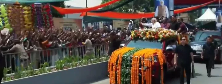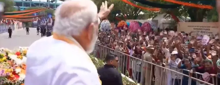 മോദി മോദി വിളിയും ഭാരത് മാതാ വിളികളുമായി ജനസഹസ്രം പ്രധാനമന്ത്രിയെ സ്വീകരിച്ചു. അവർ ഓരോരുത്തരേയും പ്രധാനമന്ത്രി കൈ വീശി ആഹ്ലാദിപ്പിച്ചു. കലൂർ സ്റ്റേഡിയത്തിന്റെ പരിസരത്തുനിന്നുതന്നെയായിരുന്നു റോഡ് ഷോ. അതുകൊണ്ടുതന്നെ വൻതിക്കിത്തിരക്കായിരുന്നു.