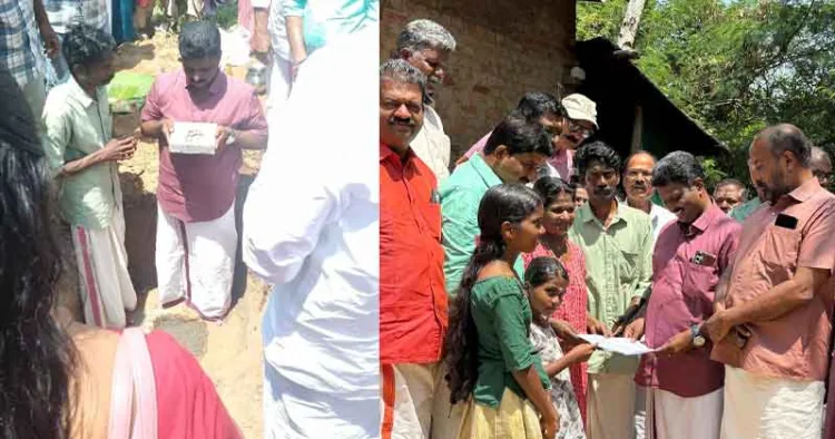 വീട് നിർമാണത്തിനായുള്ള കരാറും ഇന്ന് കൈമാറി. പെരിങ്ങിലിപ്പുറം പടിഞ്ഞാറെത്തറ വീട്ടിൽ രാംദാസിന്റെയും കിടപ്പ് രോഗിയായ ഷീബയുടെയും വിഷമത ശ്രദ്ധയിൽ പെടുത്തിയത് അവിടുത്തെ ബിജെപിയുടെ നേതാക്കളാണ്. ഉടൻ തന്നെ പുതിയ വീടിനുള്ള പരിശ്രമം തുടങ്ങി. മണ്ഡലം അധ്യക്ഷൻ സതീഷ് കൃഷ്ണൻ, ജനറൽ സെക്രട്ടറി രാജേഷ് ഗ്രാമം, ബിനുരാജ്, പഞ്ചായത്ത് പ്രസിഡൻ്റ് ശ്രീകുമാർ നെടുംചാലിൽ, കർഷക മോർച്ച സംസ്ഥാന സെക്രട്ടറി ഗോപൻ ഗ്രാമം, മഹിളാ മോർച്ച നേതാക്കളായ പ്രീതി, ശാന്തി, ഗ്രാമപ്പഞ്ചായത്ത് അംഗം ശ്രീജ എന്നിവരുടെയൊക്കെ ഇടപെടലുകളും നിർണായകമായി.