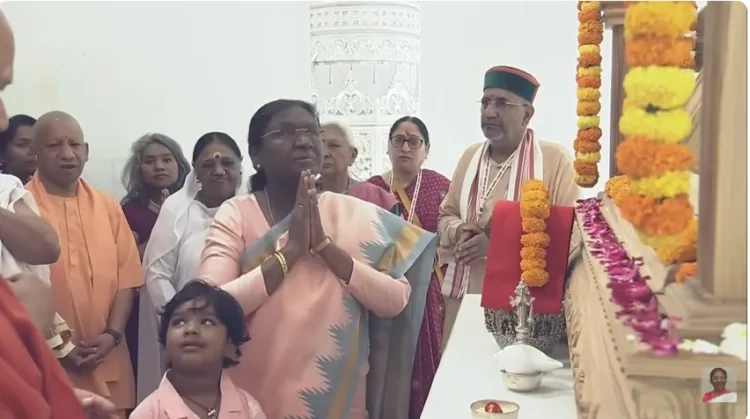 രാഷ്‌ട്രപതി ദ്രൗപദി മുർമു അയോദ്ധ്യയിൽ പൂജ നടത്തി; അമൃതാനന്ദമയിയും യോഗിയും ഒപ്പം